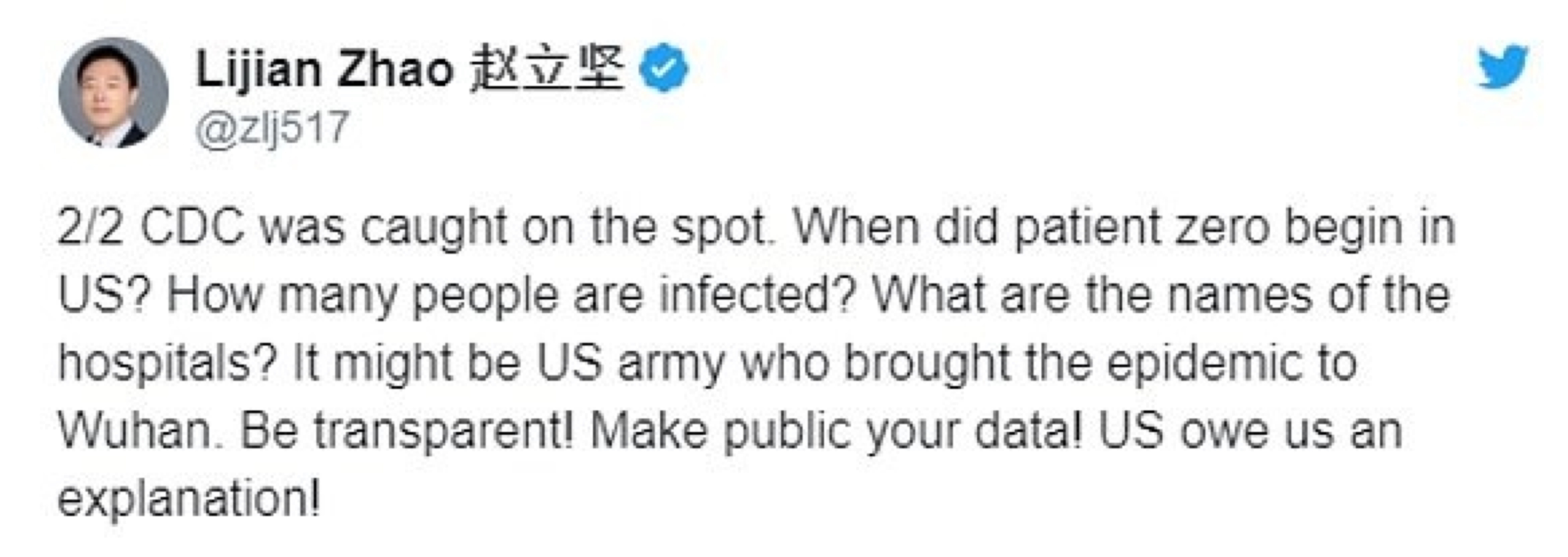 이것은 명백히 중국 공산당이 코로나19 바이러스를 우한 시장에서 박쥐에 의해 확산되었다는 설을 부정하는 부분으로서 사실상 중국 공산당이 정부 차원에서 코로나19 바이러스를 생물 무기로 사용했음을 입증하는 것이라고 미 국무부 자료는 밝혔습니다.