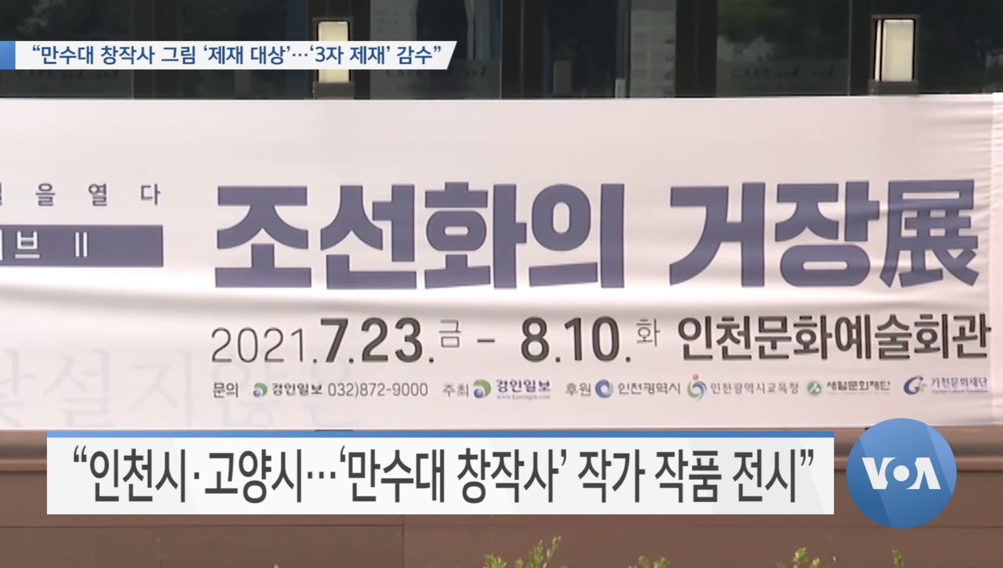 VOA는 한국 인천광역시와 고양시 등 지방자치단체들이 후원한 미술품 전시회에 만수대 창작사 사장 김성민의 2018년 작품 등 대북제재 대상인 북한 만수대 창작사 소속 작가들의 미술품이 다수 전시됐다고 보도했습니다.