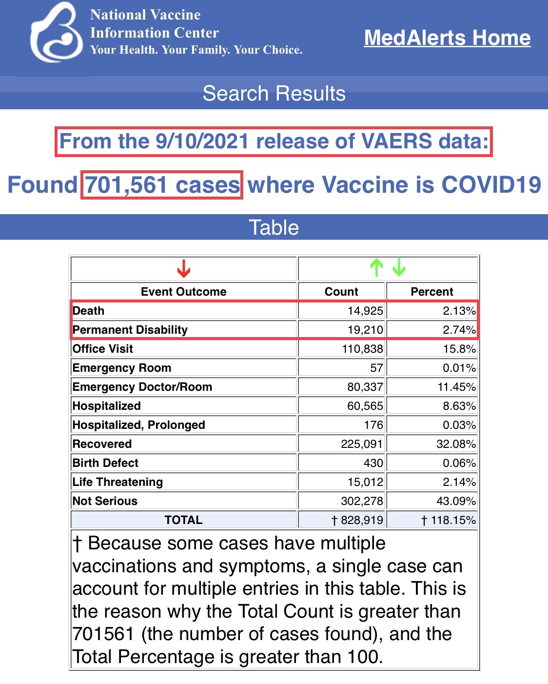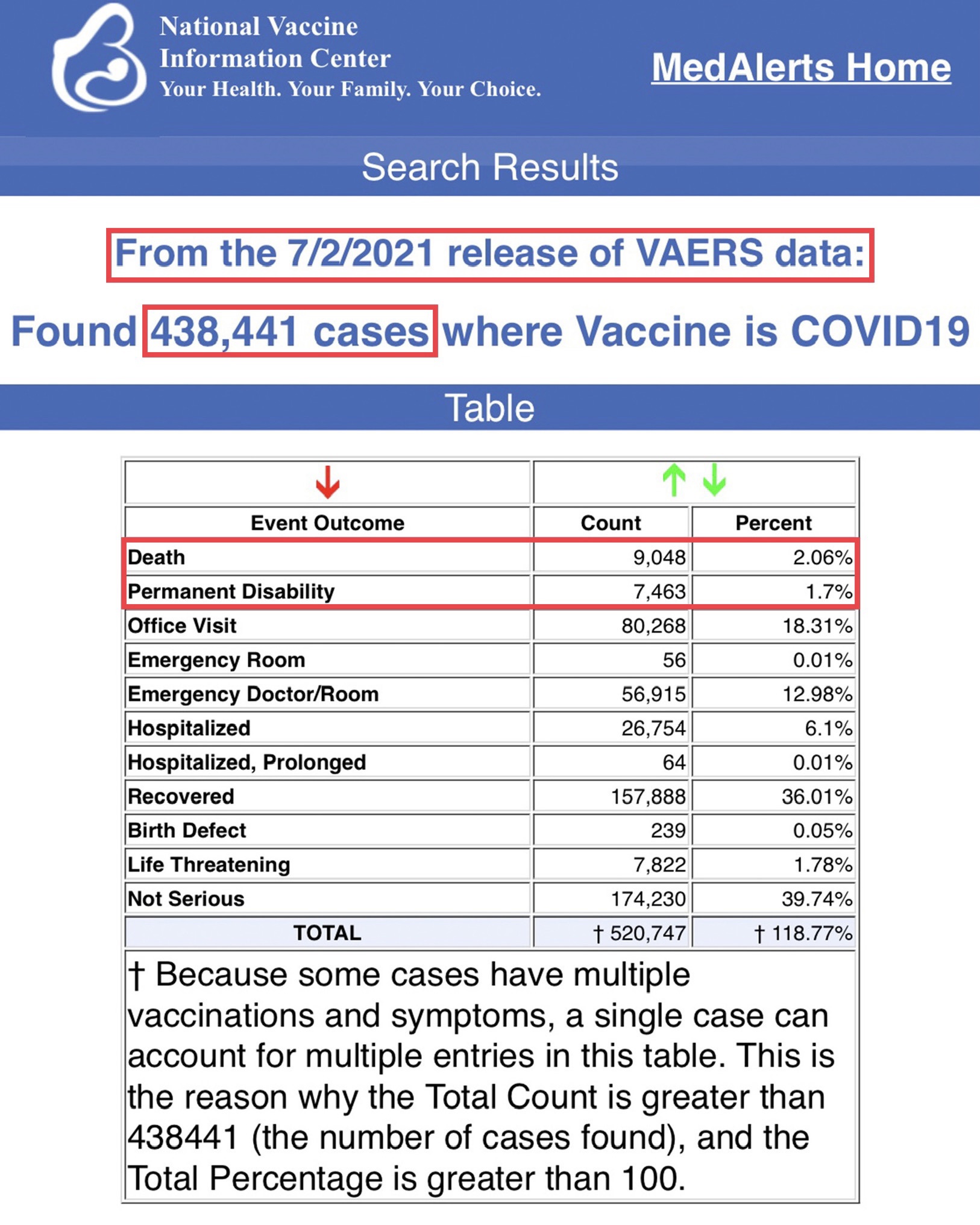 From the 7/2/2021 release of VAERS data: Found 438,441 cases where Vaccine is COVID19