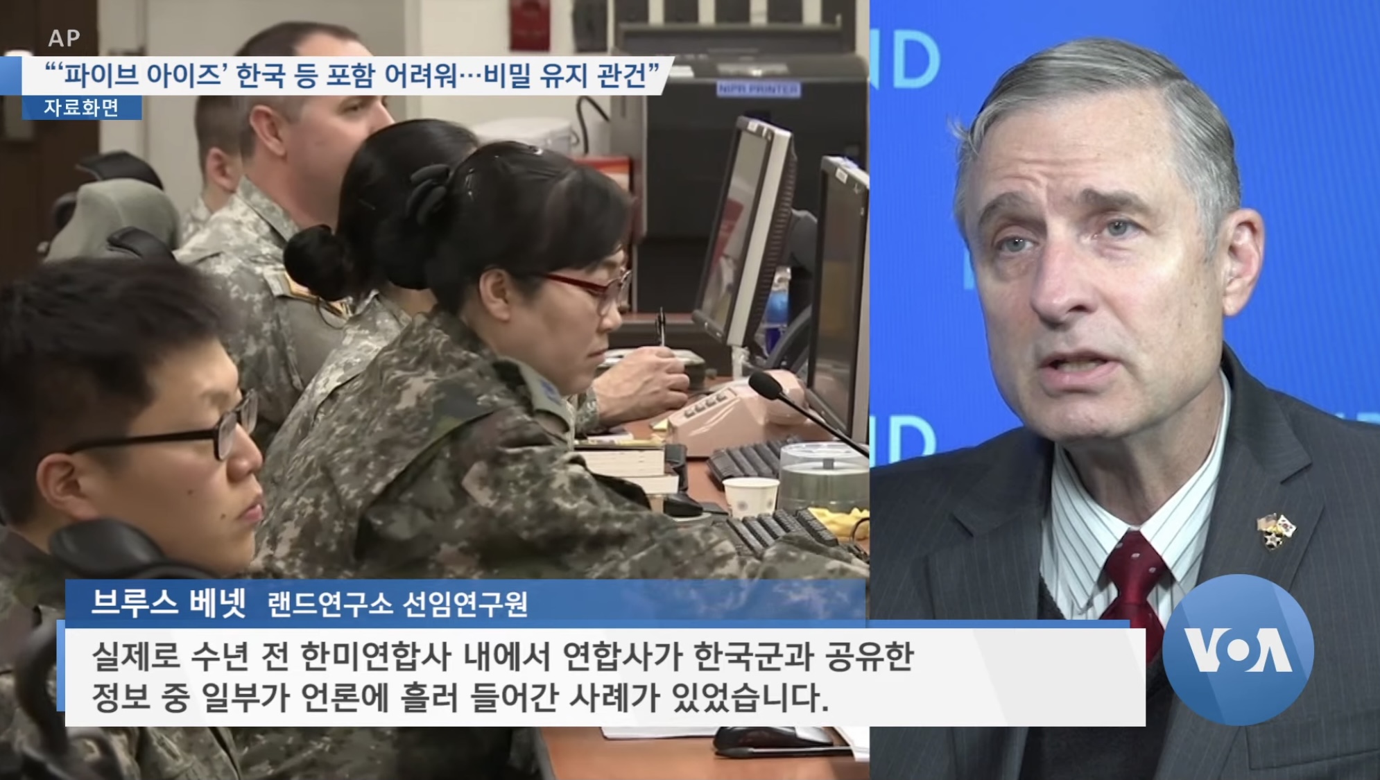 브루스 베넷 랜드연구소 선임연구원은 하원 군사위가 파이브 아이즈 확대를 추진하는 배경과 관련해, 미국이 모든 동맹국들과 중요한 정보를 공유하기를 원한다고 말했습니다.