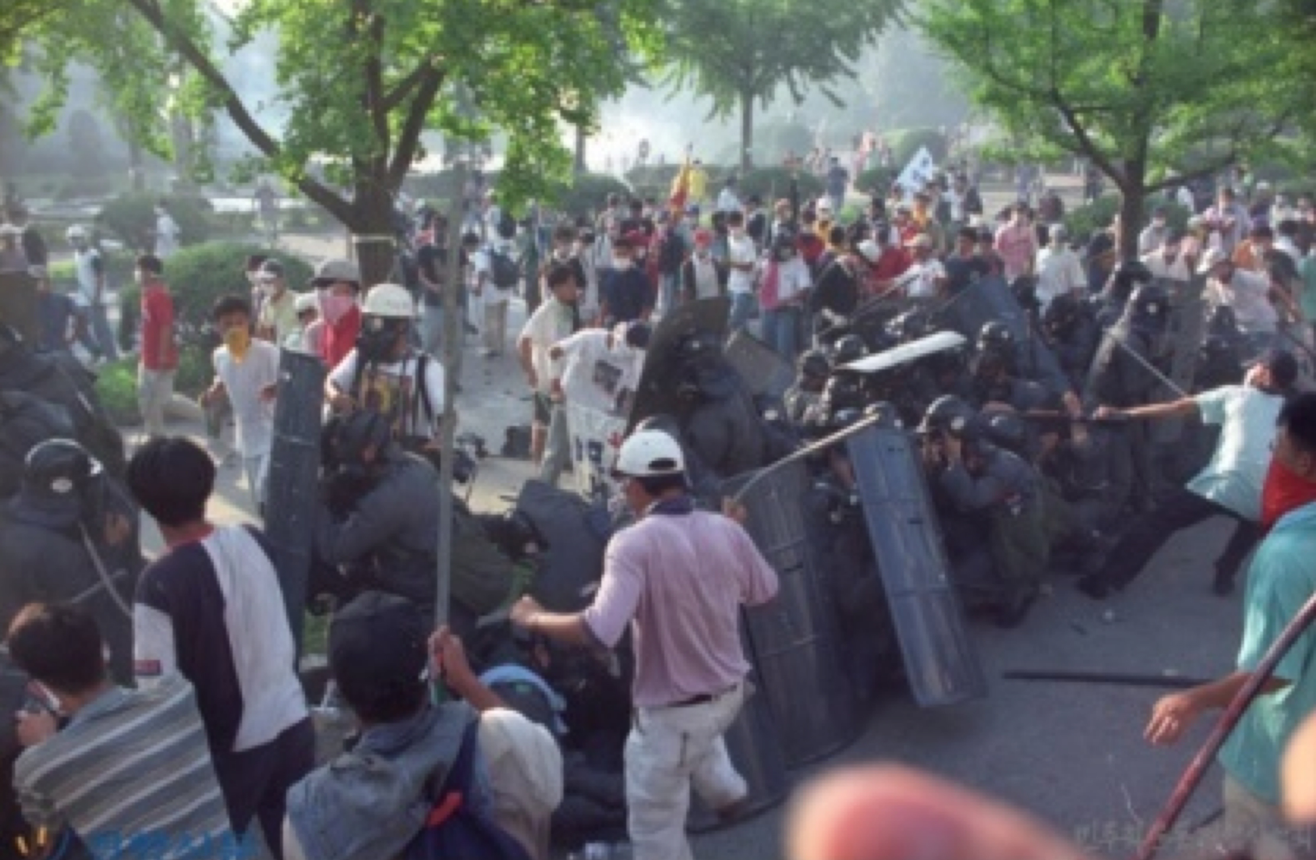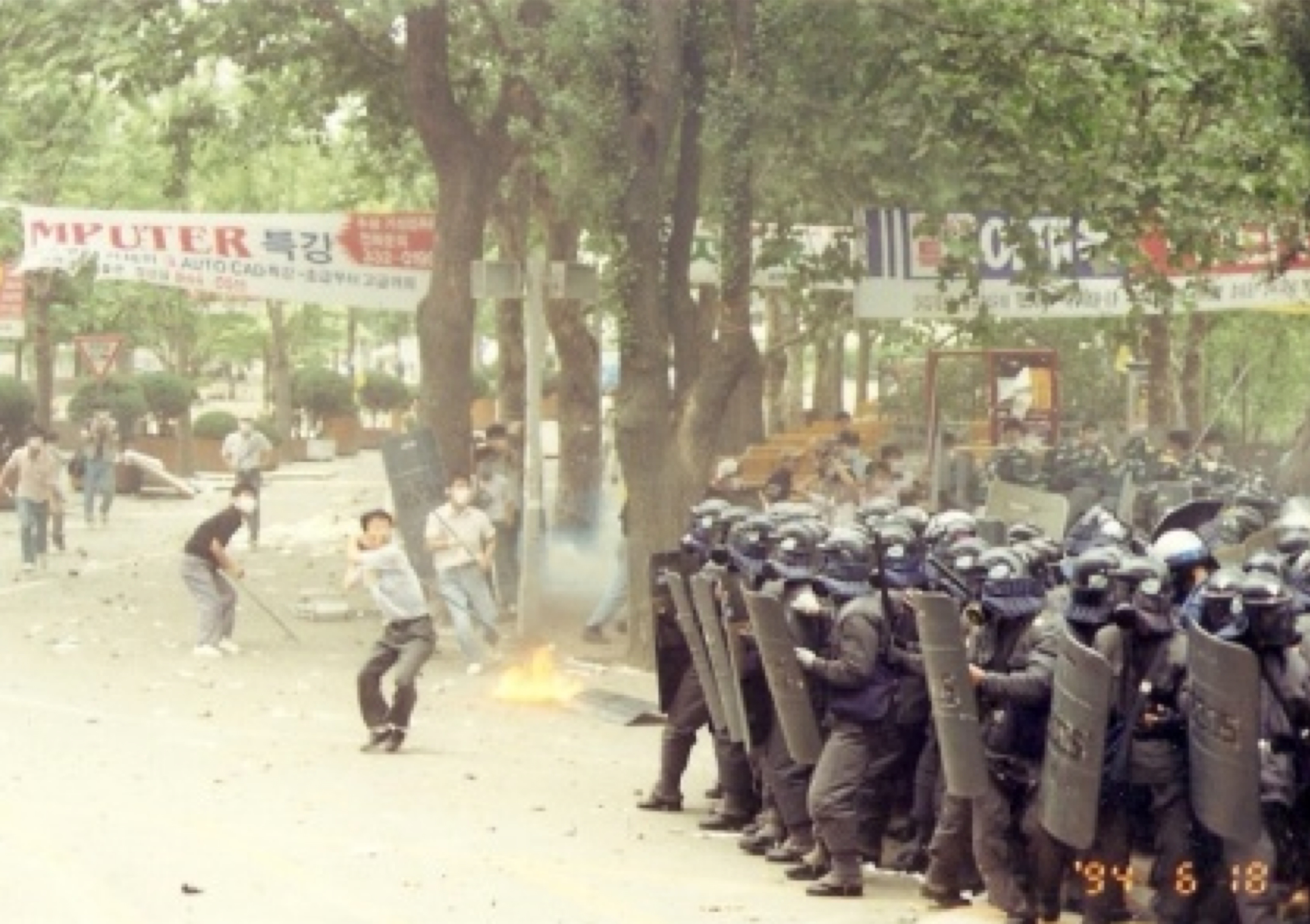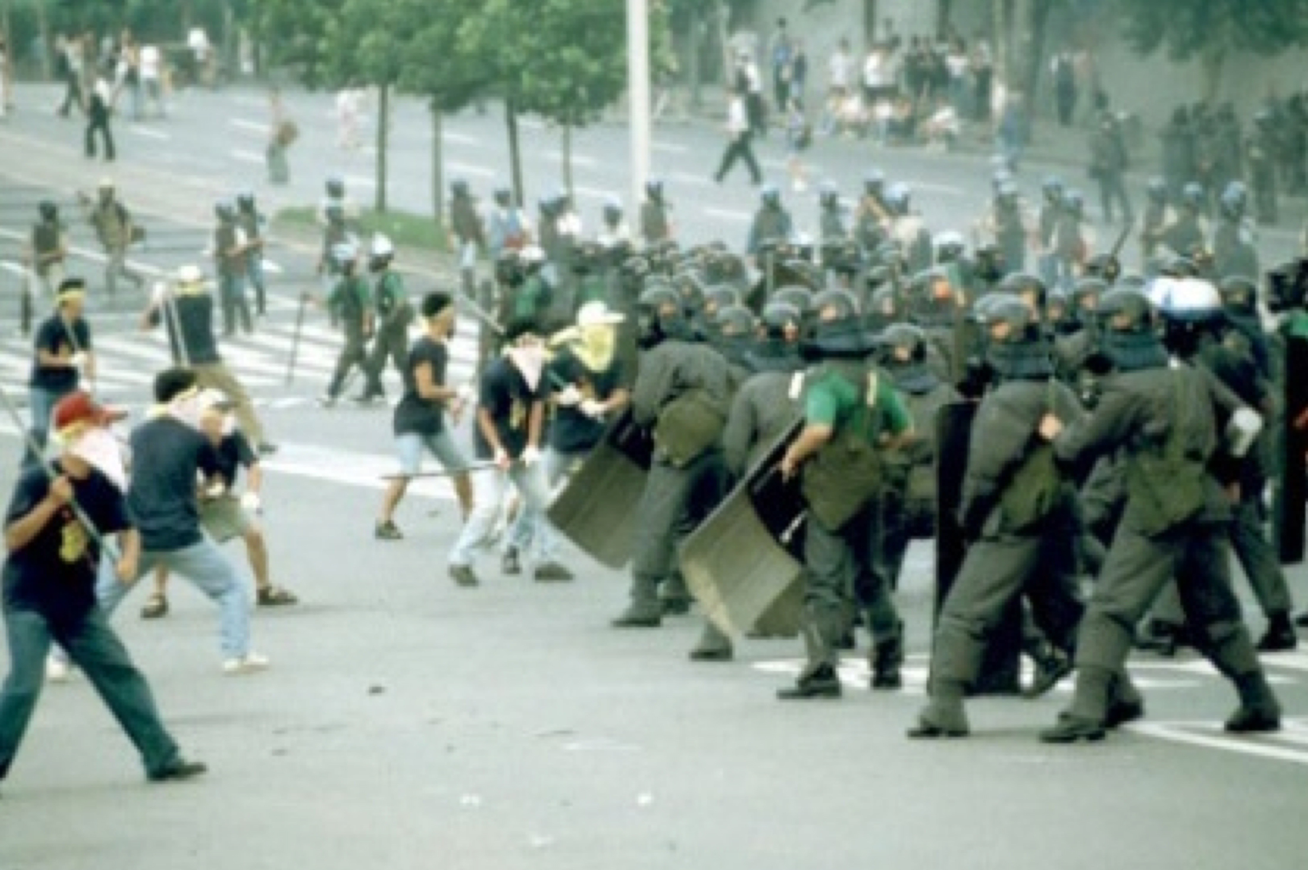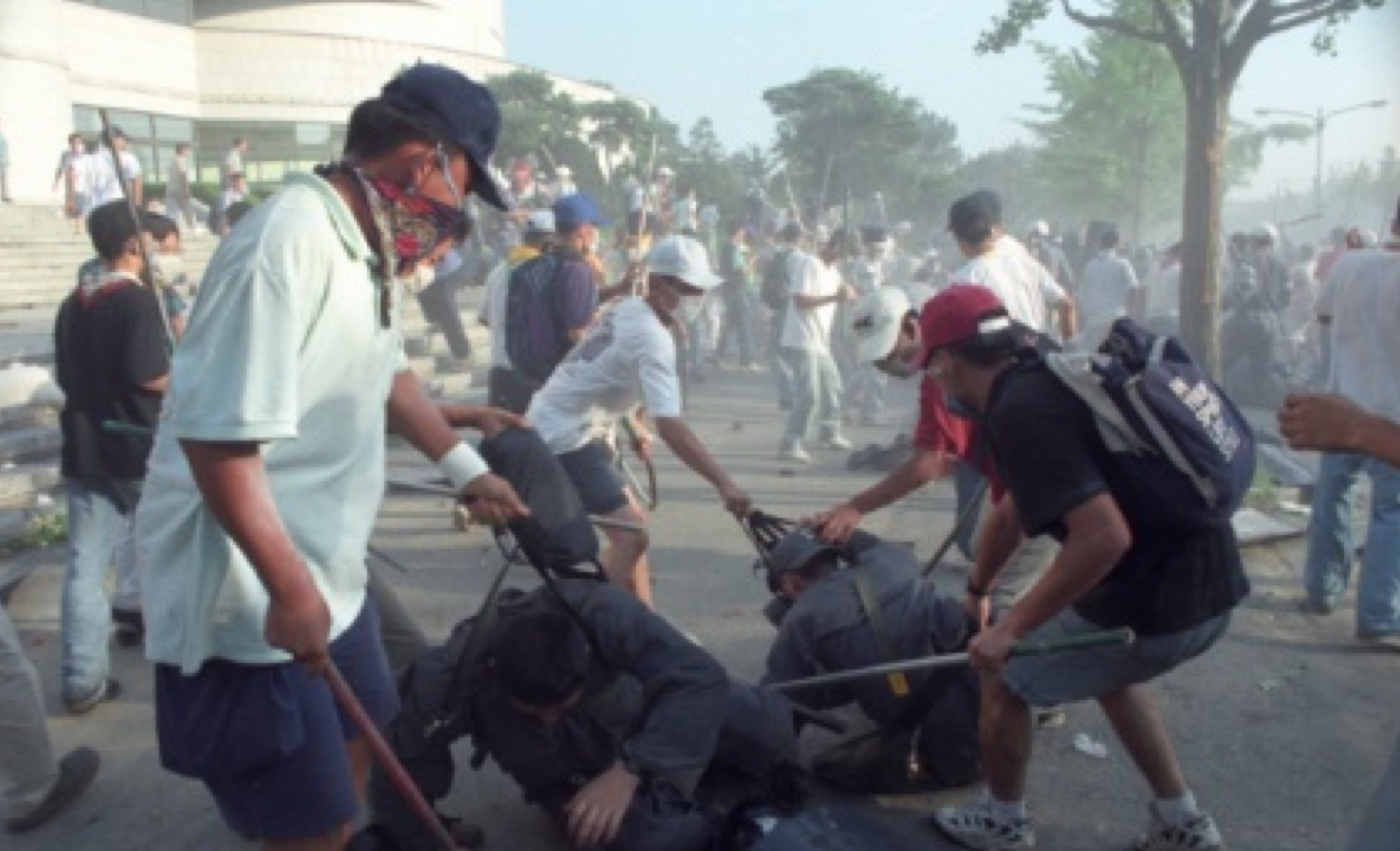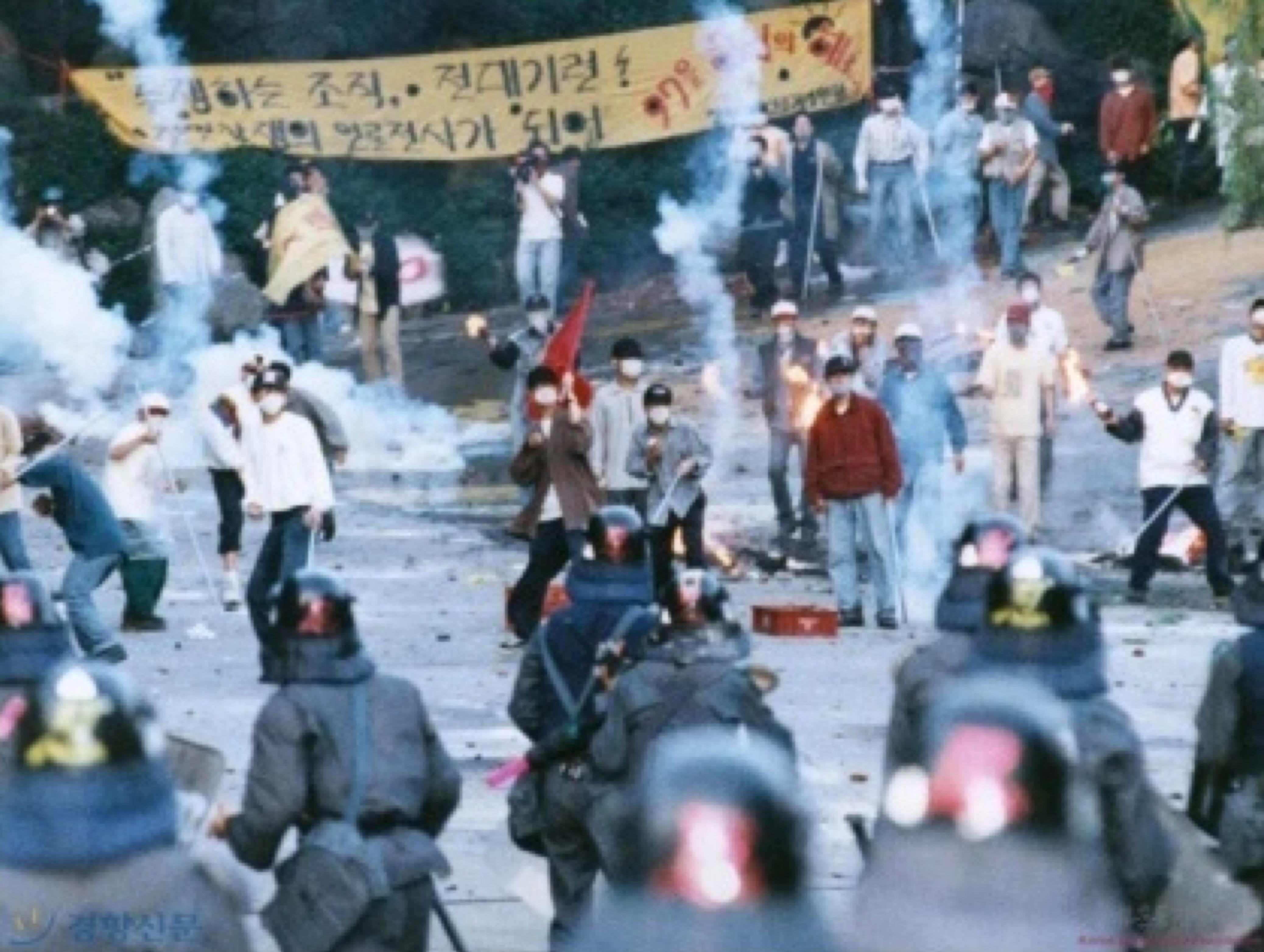 1년전인 96년 8월 서울 연세대학교에서는 한총련의 폭력시위 도중학생이 던진 벽돌을 맞고 한 전경이 숨졌다.