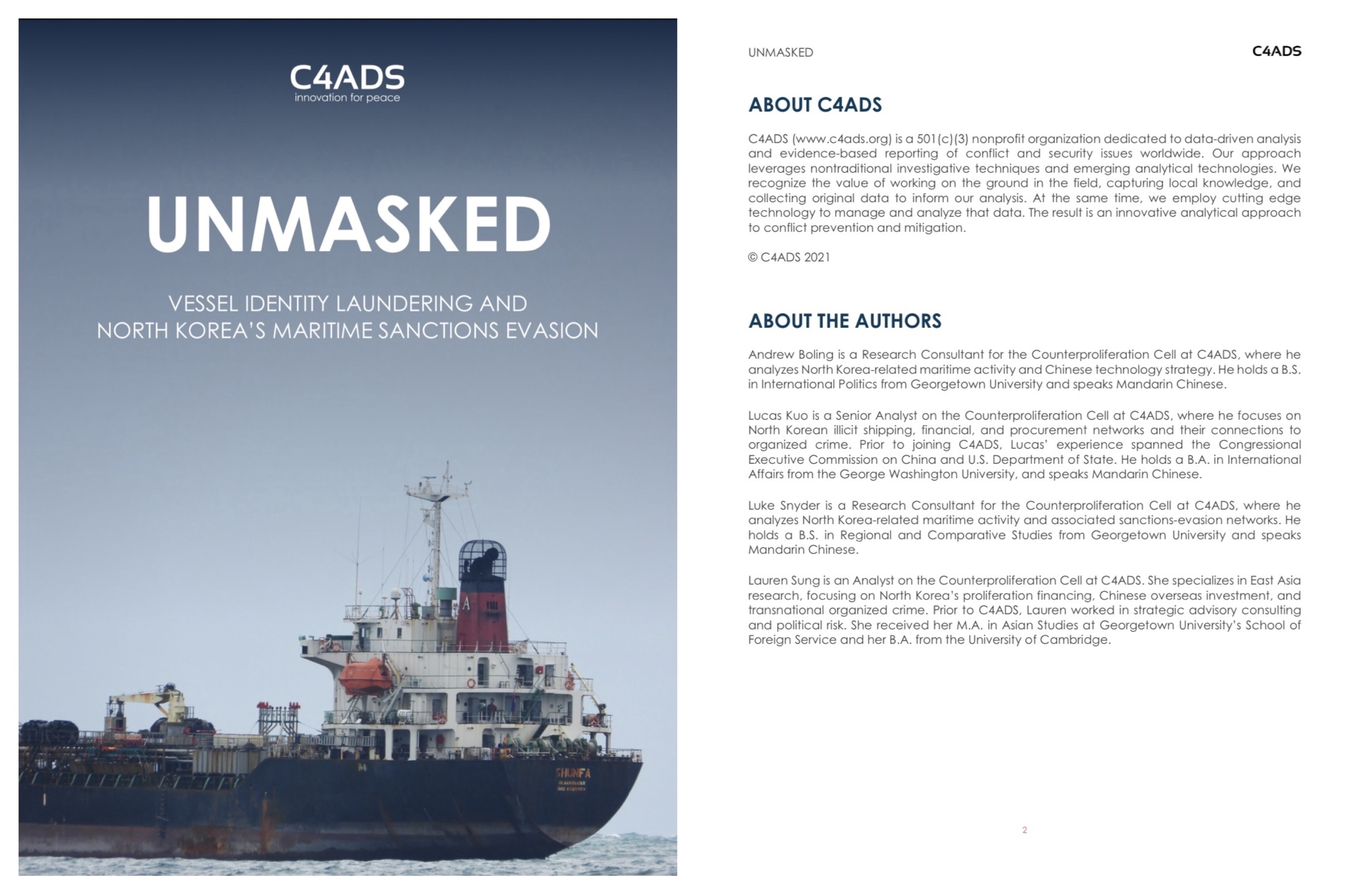 이 보고서는 2척의 대북제재 위반 선박의 실제 사례를 바탕으로 선박들이 이름과 국제해사기구(IMO) 등록번호를 위조하는 방식 등을 상세하게 공개했습니다.