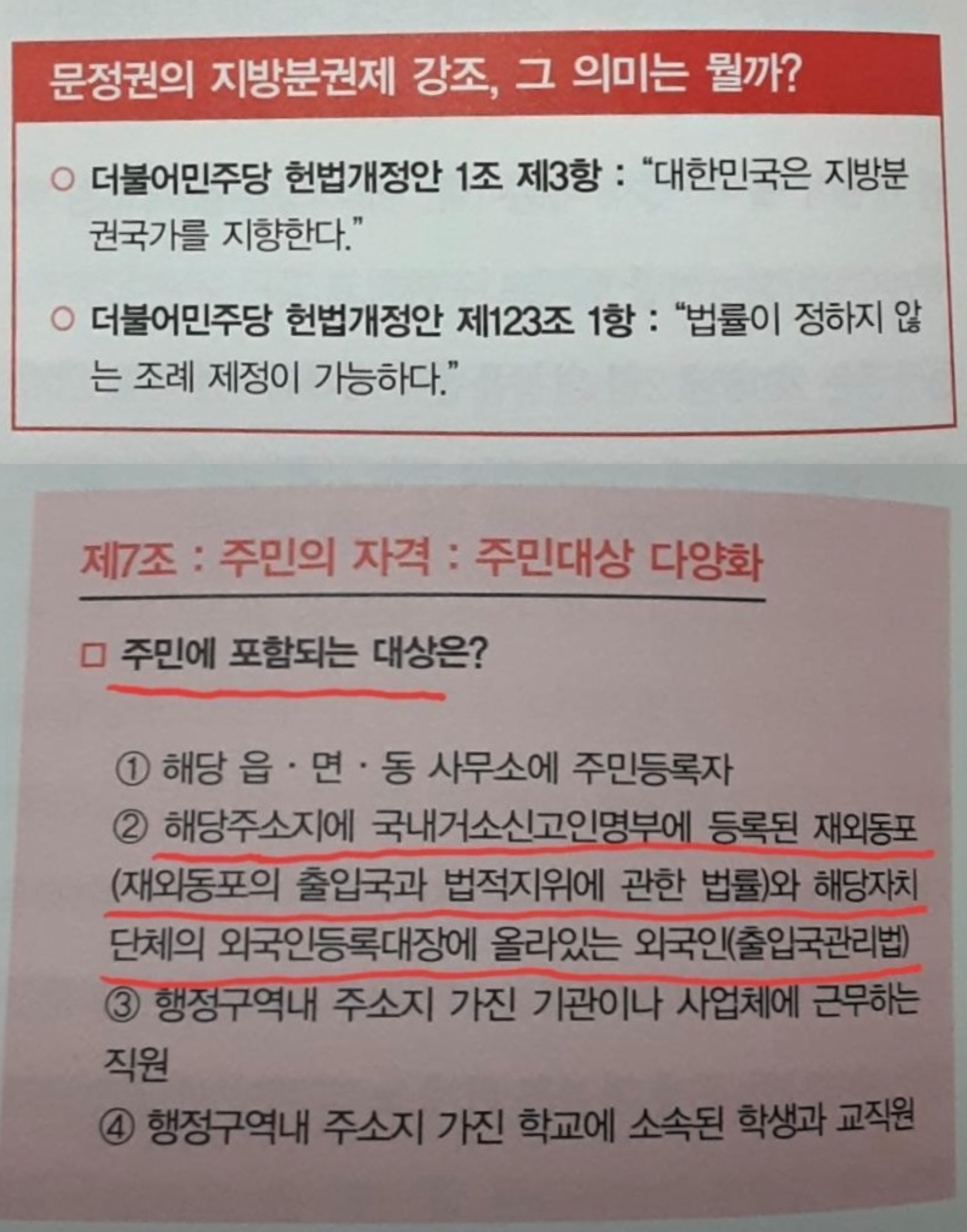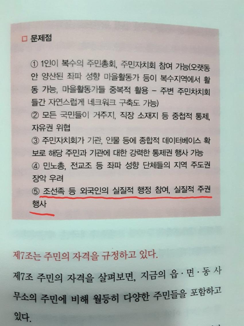 그는 주민자치법안의 ‘주민 자격’과 관련한 조항을 가장 심각한 독소조항으로 꼽았다.