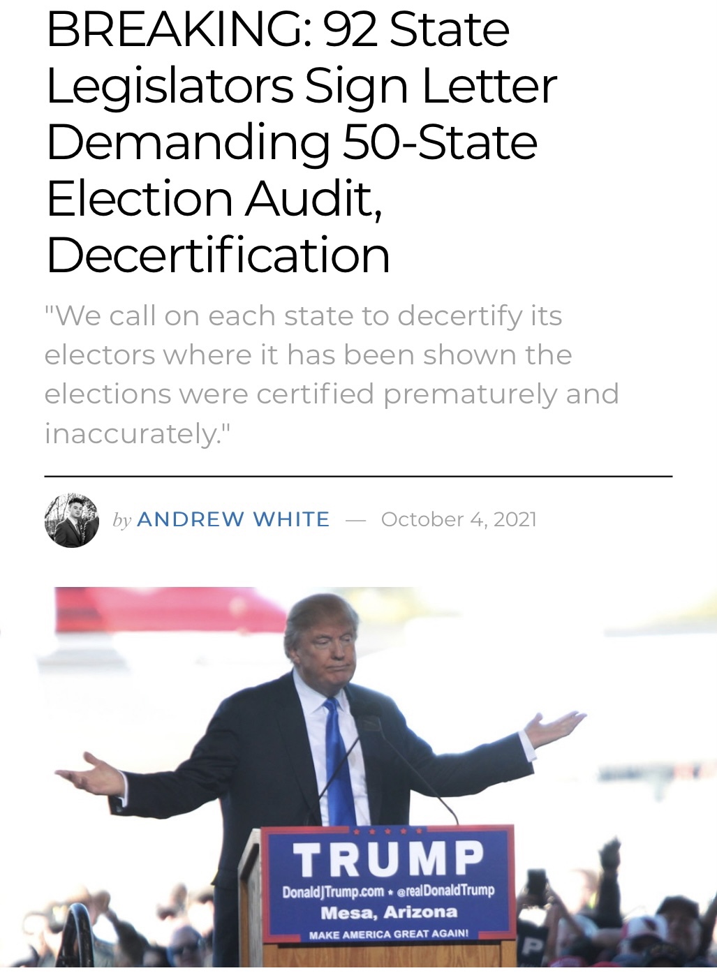 The Arizona Senate will release its long-awaited audit report of the 2020 election in AZ. Senate President Karen Fann and Senate Judiciary Committee Chairman Warren Petersen will receive the report on the Senate floor at 1 p.m. followed by a detailed discussion of its findings