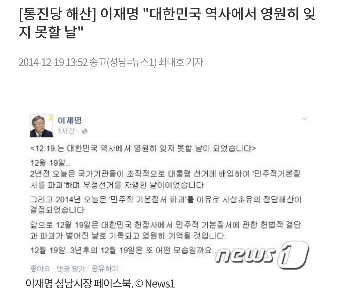 [통진당 해산] 이재명 « 대한민국 역사에서 영원히 잊지 못할 날 »