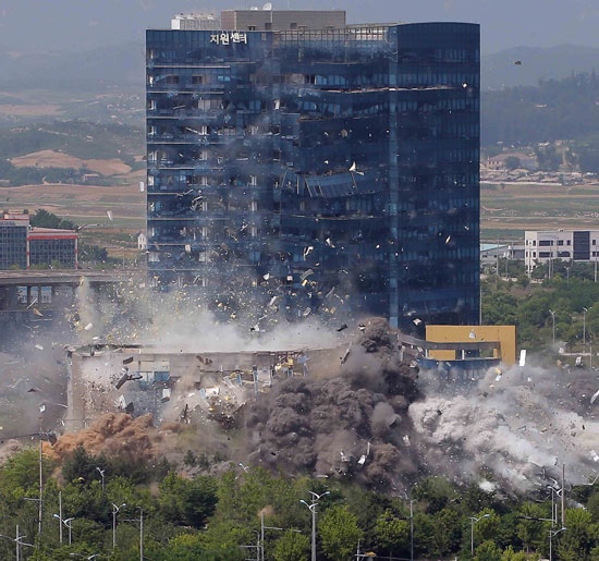 조선중앙방송은 이날 오후 4시50분 “쓰레기들과 이를 묵인한 자들의 죗값을 깨깨(몽땅) 받아내야 한다는 격노한 민심에 부응하여 북남공동연락사무소를 완전 파괴시키는 조치를 실행했다”며 “16일 14시50분 요란한 폭음과 함께 북남공동연락사무소가 비참하게 파괴됐다”고 보도했다.
