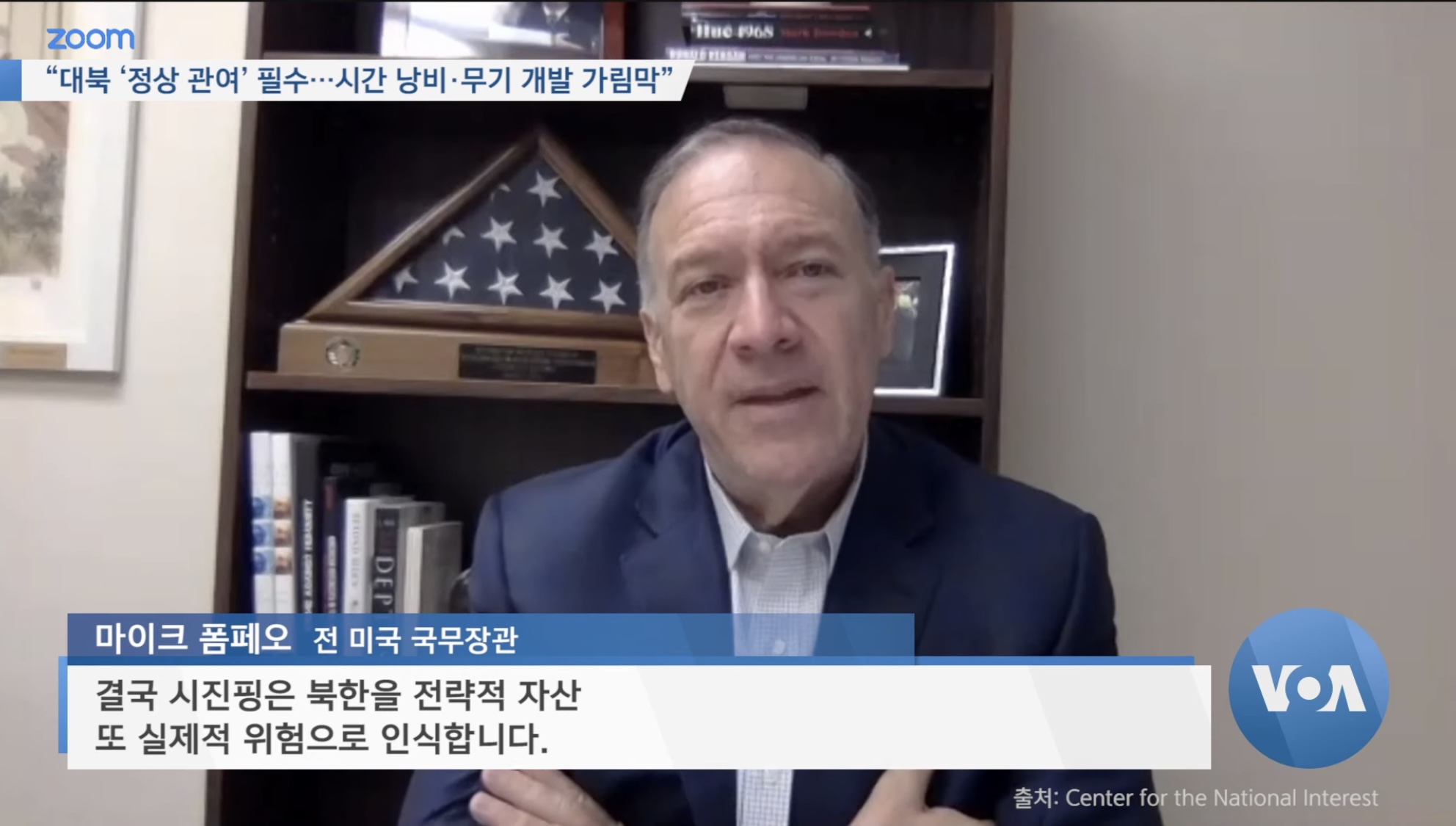 폼페오 전 장관은 2022년 2월 18일 미국 국익연구소(CNI)가 주최한 화상 대담에서 ‘장기 교착 상태에 빠진 미-북 협상 재개를 위해 고위급 수준의 관여가 필요한가’라는 VOA의 질문에 이같이 답했습니다.