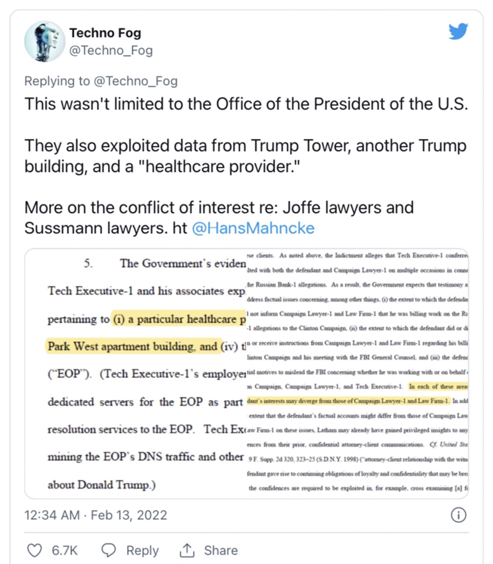 Via Techno Fog’s SubStack: According to Durham, Joffe and his associates exploited internet data from “the Executive Office of the President of the United States” to further their own political agenda. They had come to possess this data as part of a “sensitive arrangement” with the U.S. government. As Durham explains: